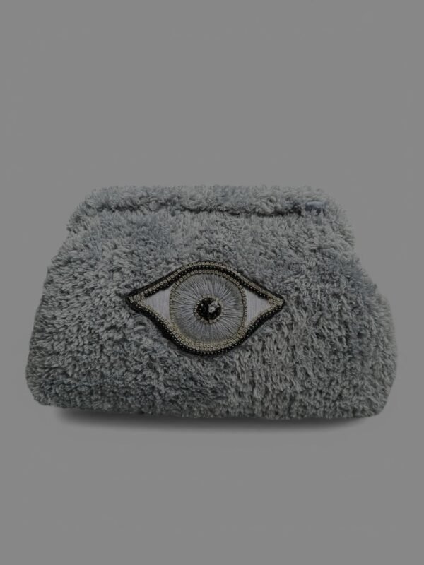 ⸻ Ürün Özellikleri * El işçiliği iplik dolgu işlemeli göz motifi * Boncuk ve taş detaylı tasarım * Yumuşak dokulu özel iplik yüzey * Clutch form (elde taşınabilir)