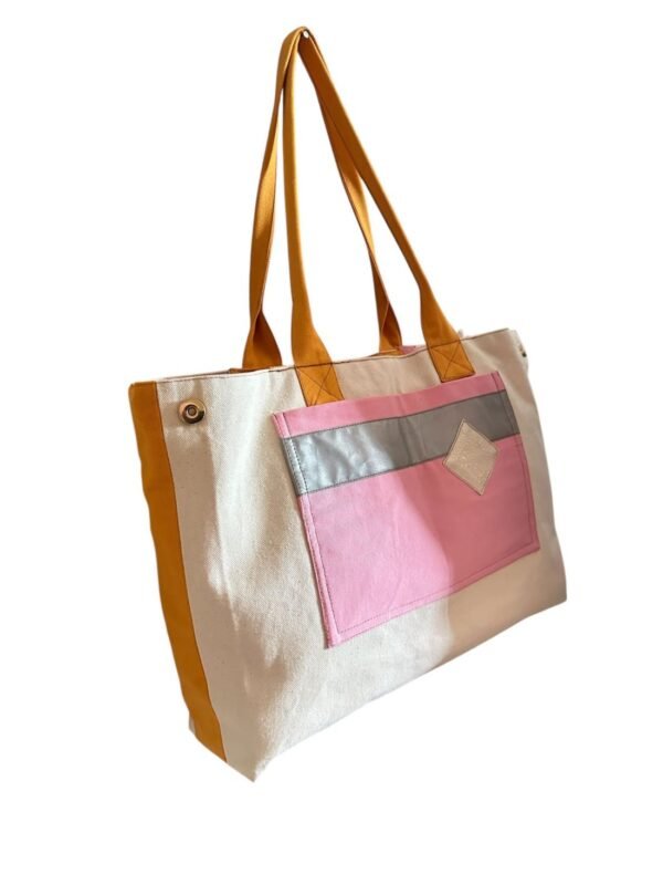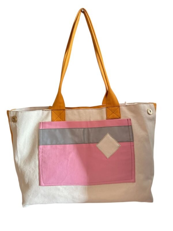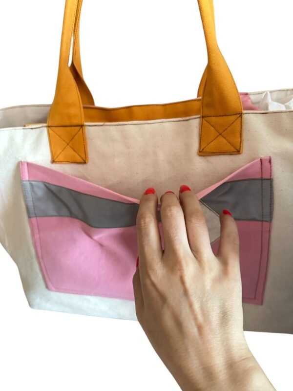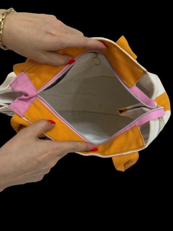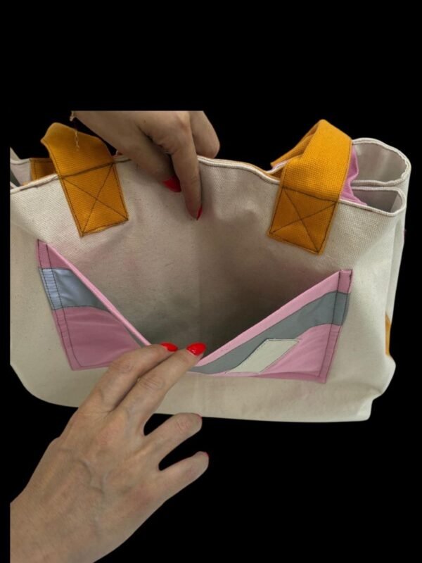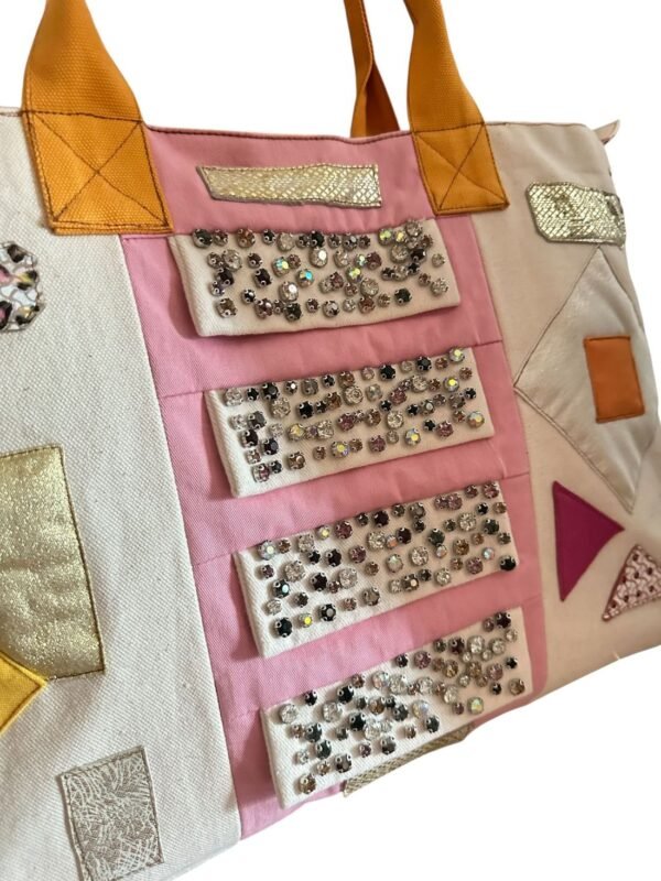 El işçiliğiyle tasarlanmış bu özel tote çanta; pastel tonların huzurunu, canlı renklerin enerjisini ve simli detayların ışıltısını bir araya getiriyor.